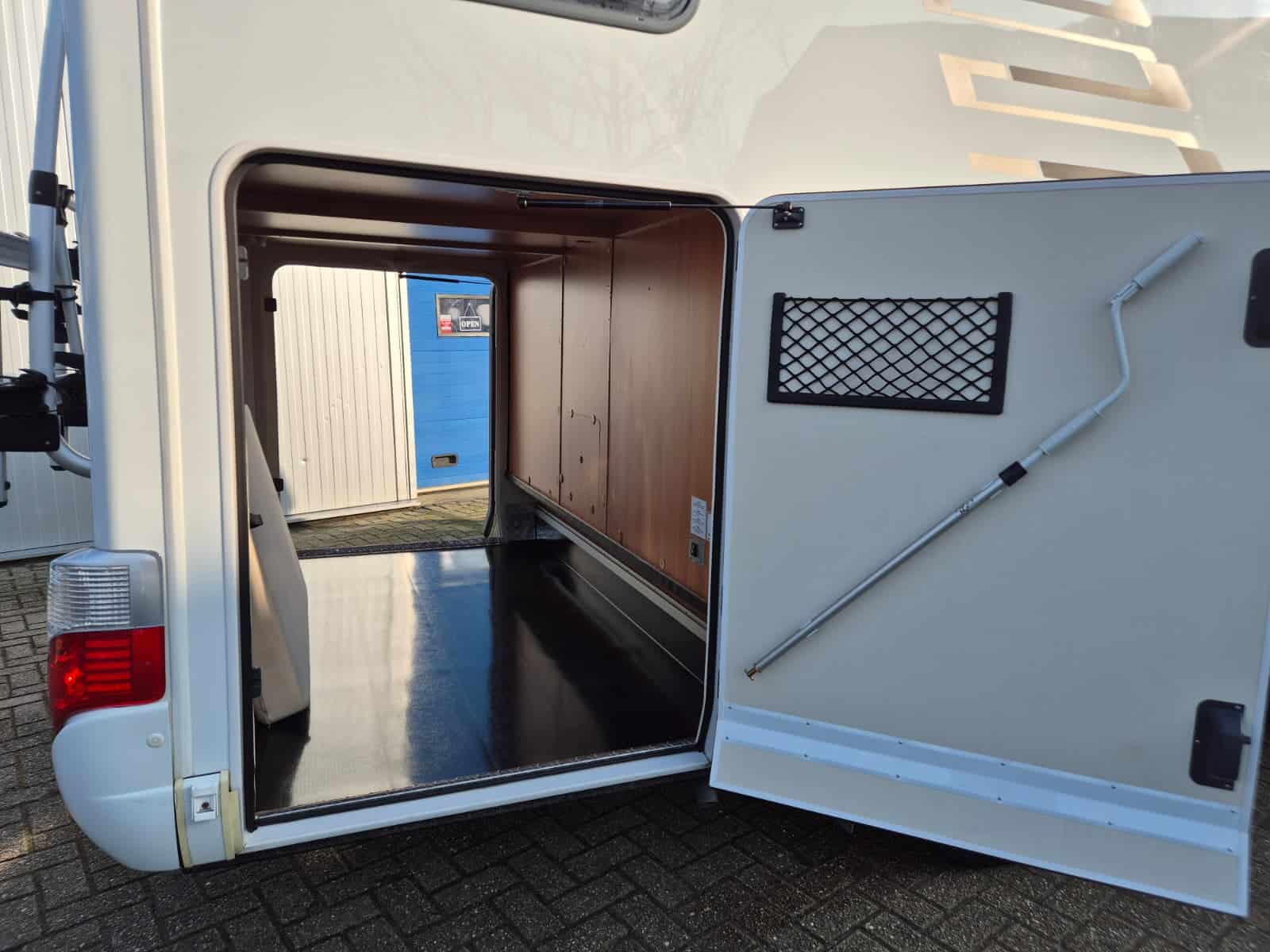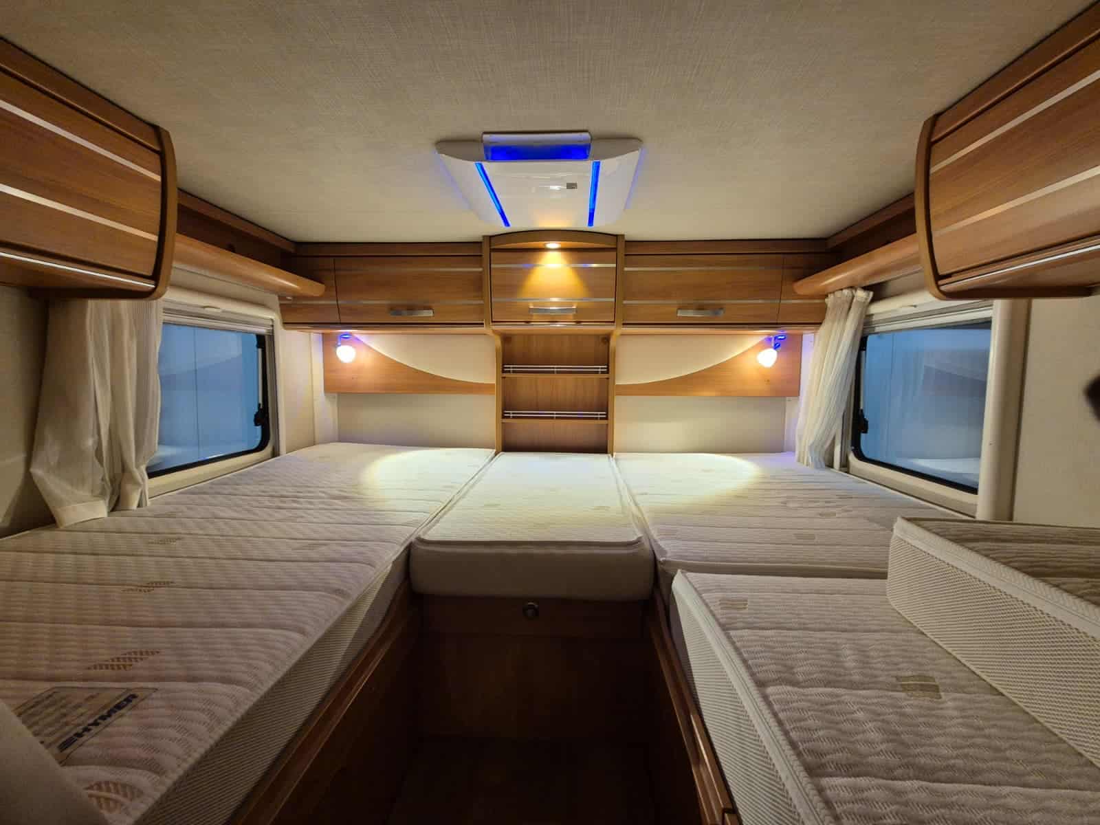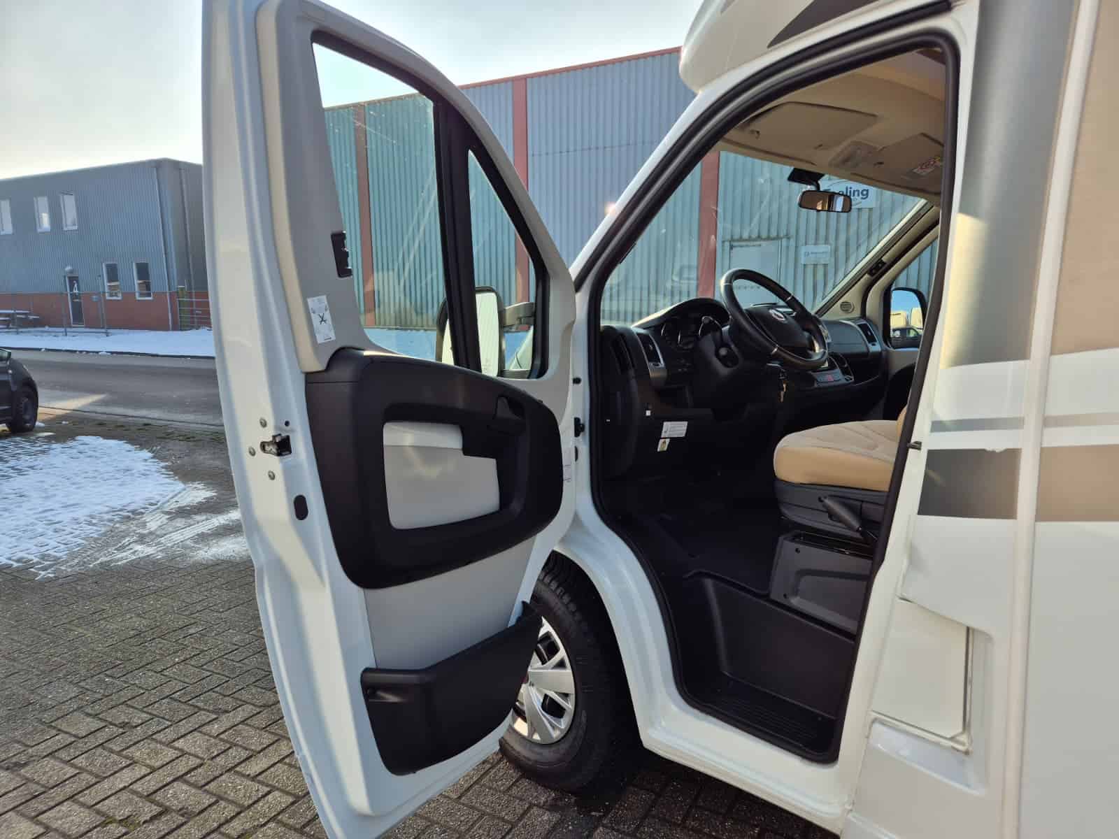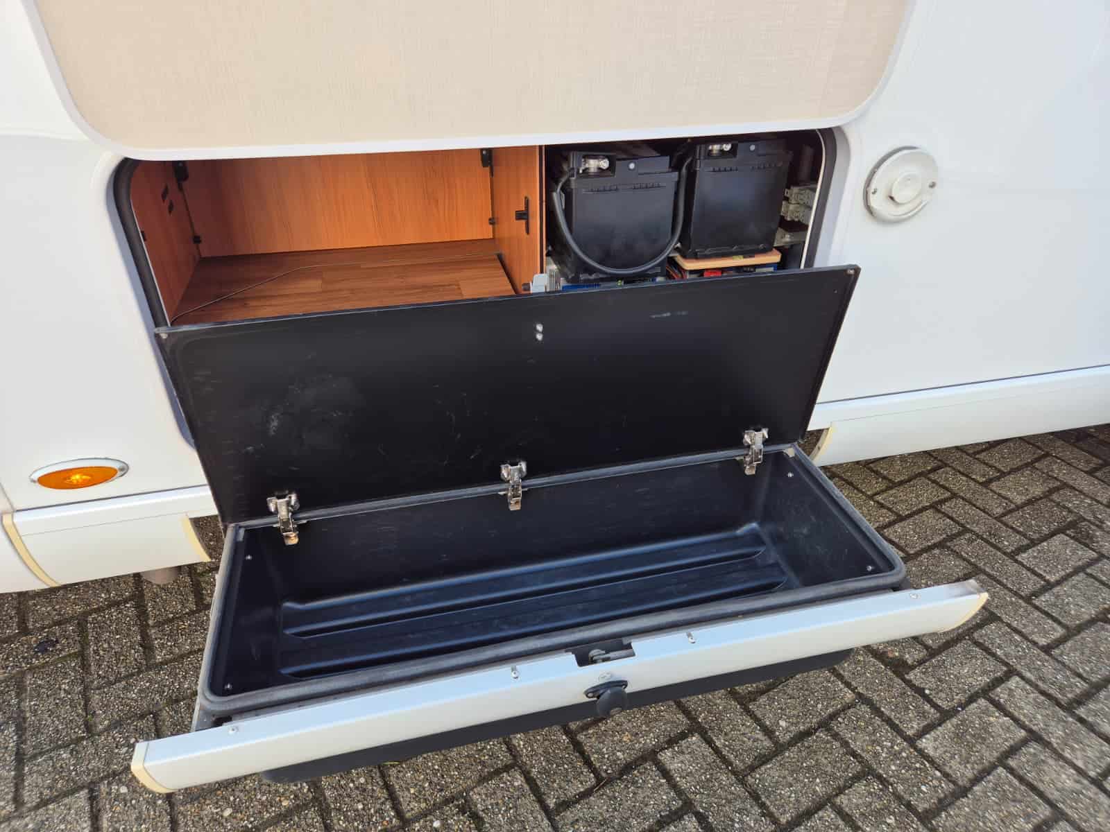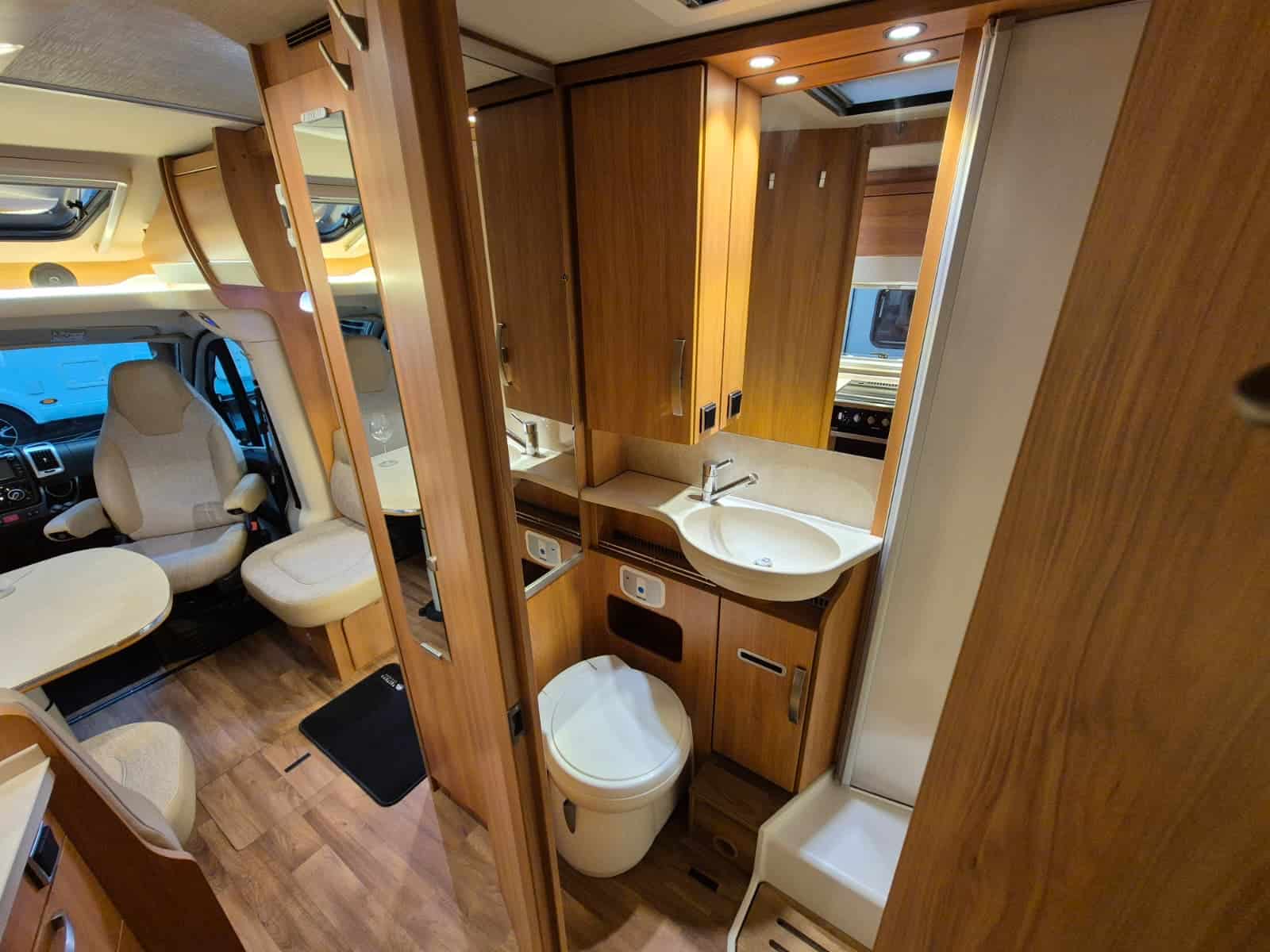Middenkeuken 3-pits gascomfort Oven & grill Grote koelkast (135 liter) met vriesvak Spoelbak met kraan Veel kastruimte en hangkasten Dubbele bodem Sanitair Badkamer in middenopstelling Afgesloten douchecabine Wastafel Cassettetoilet Wintervaste schoon- en vuilwatertanks Comfort & Voorzieningen Ringverwarming (wintervast – geschikt voor alle seizoenen) 2x zonnepaneel Omvormer 2000W 2 huishoudaccu’s 2x airco (opbouw) Panoramadak Verduistering en horren rondom + cabine Indirecte sfeerverlichting en leeslampjes Luifel Hordeur Buitenlamp Zeer grote XXL-garage