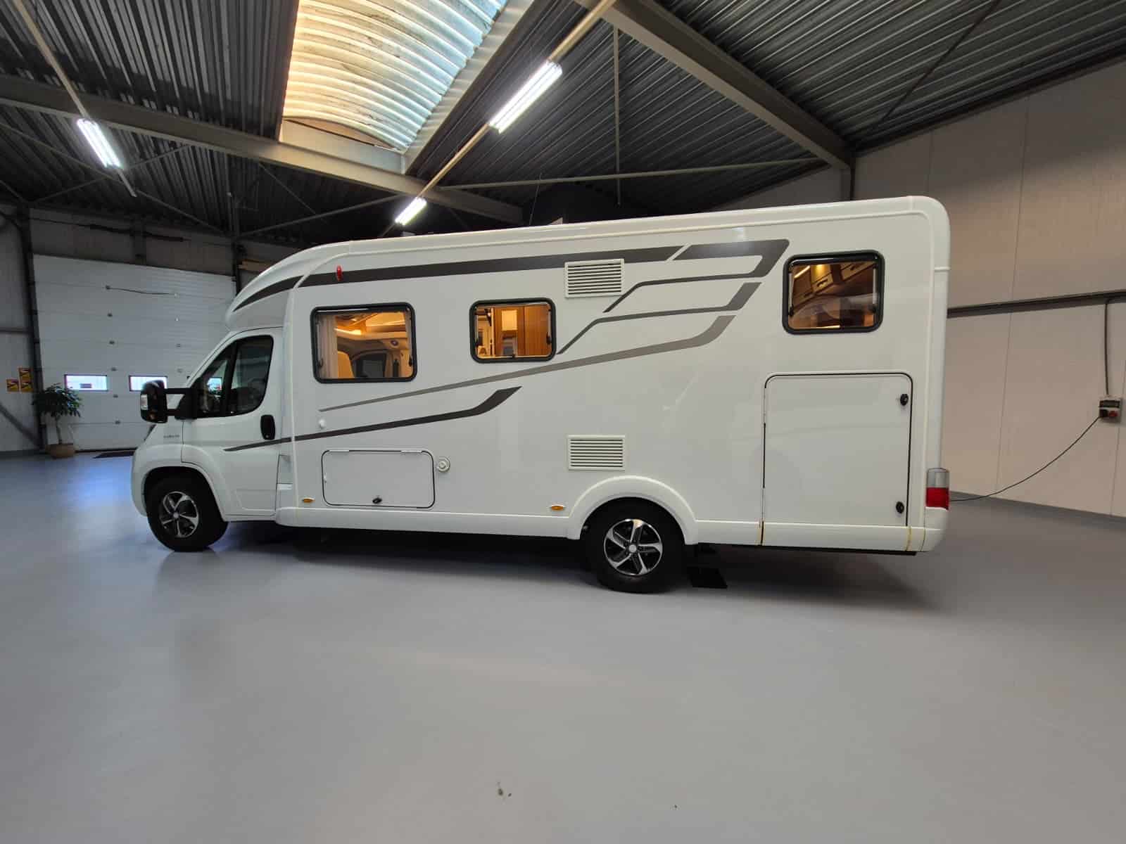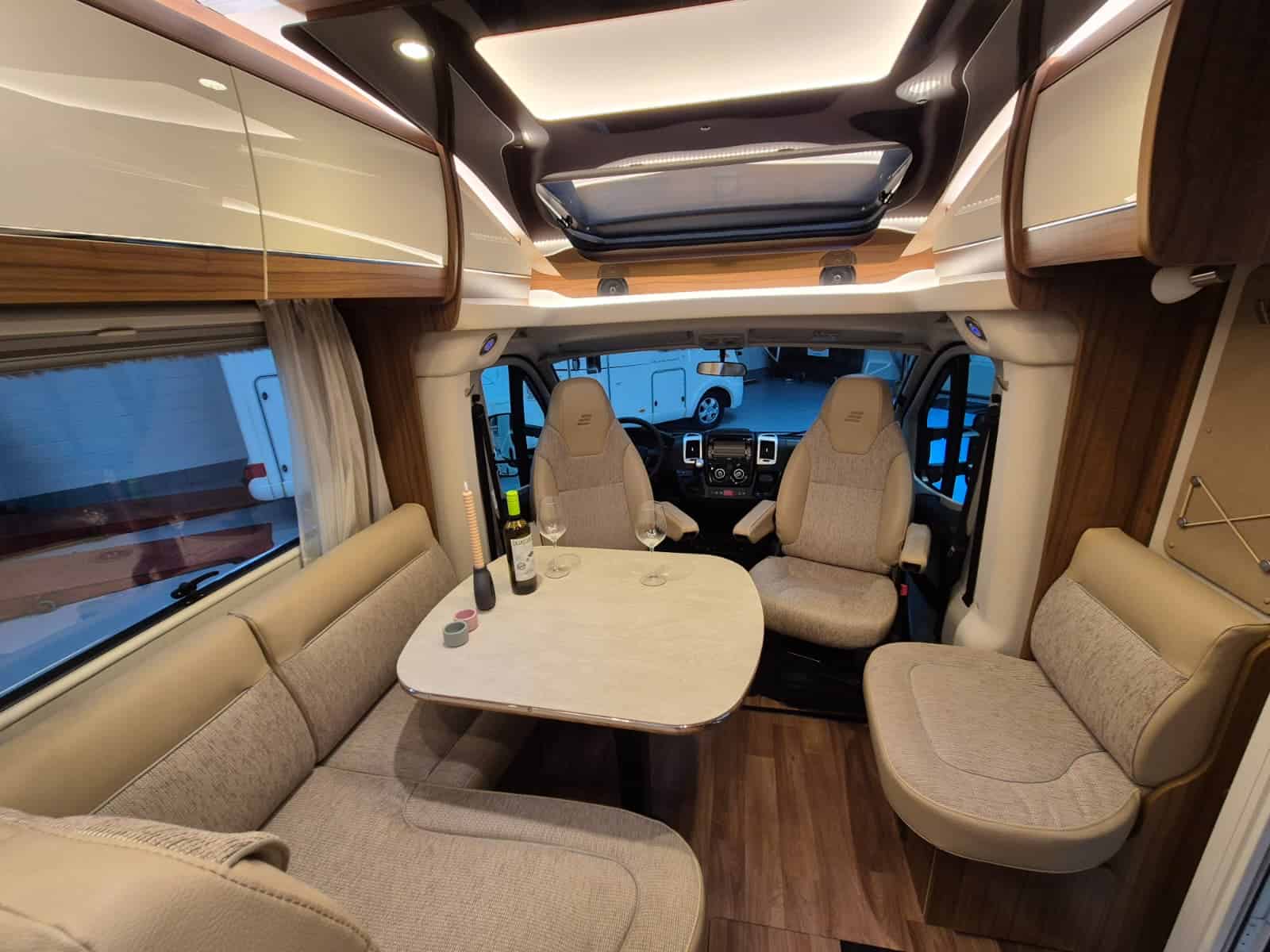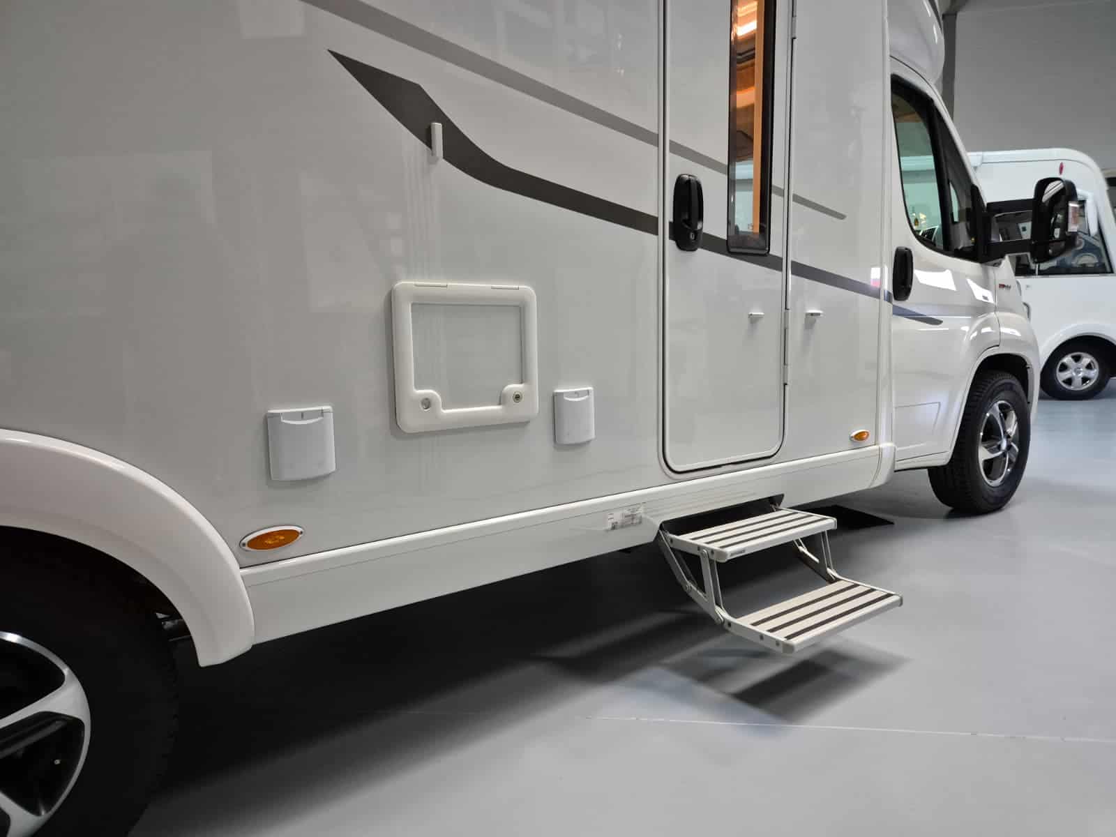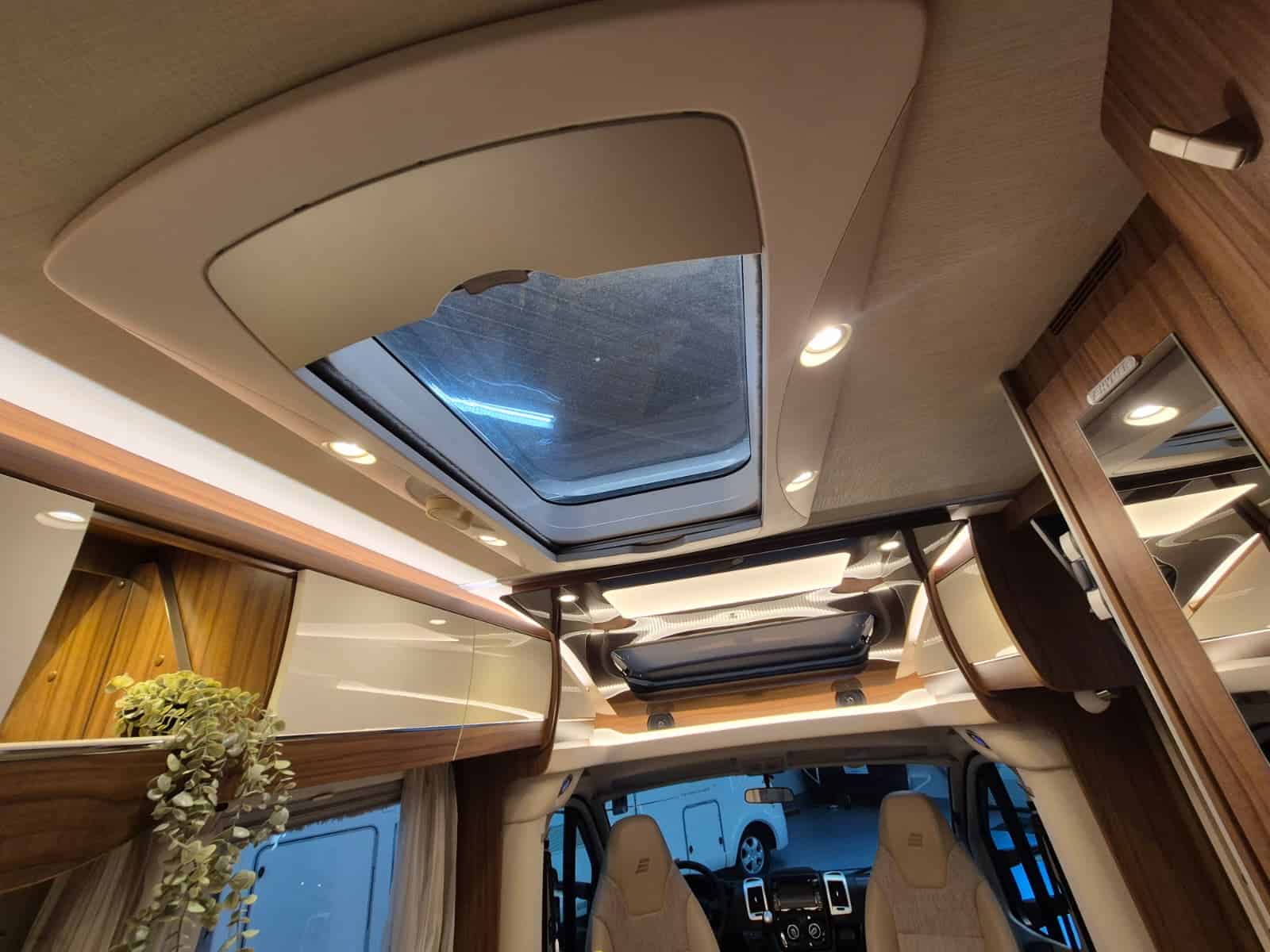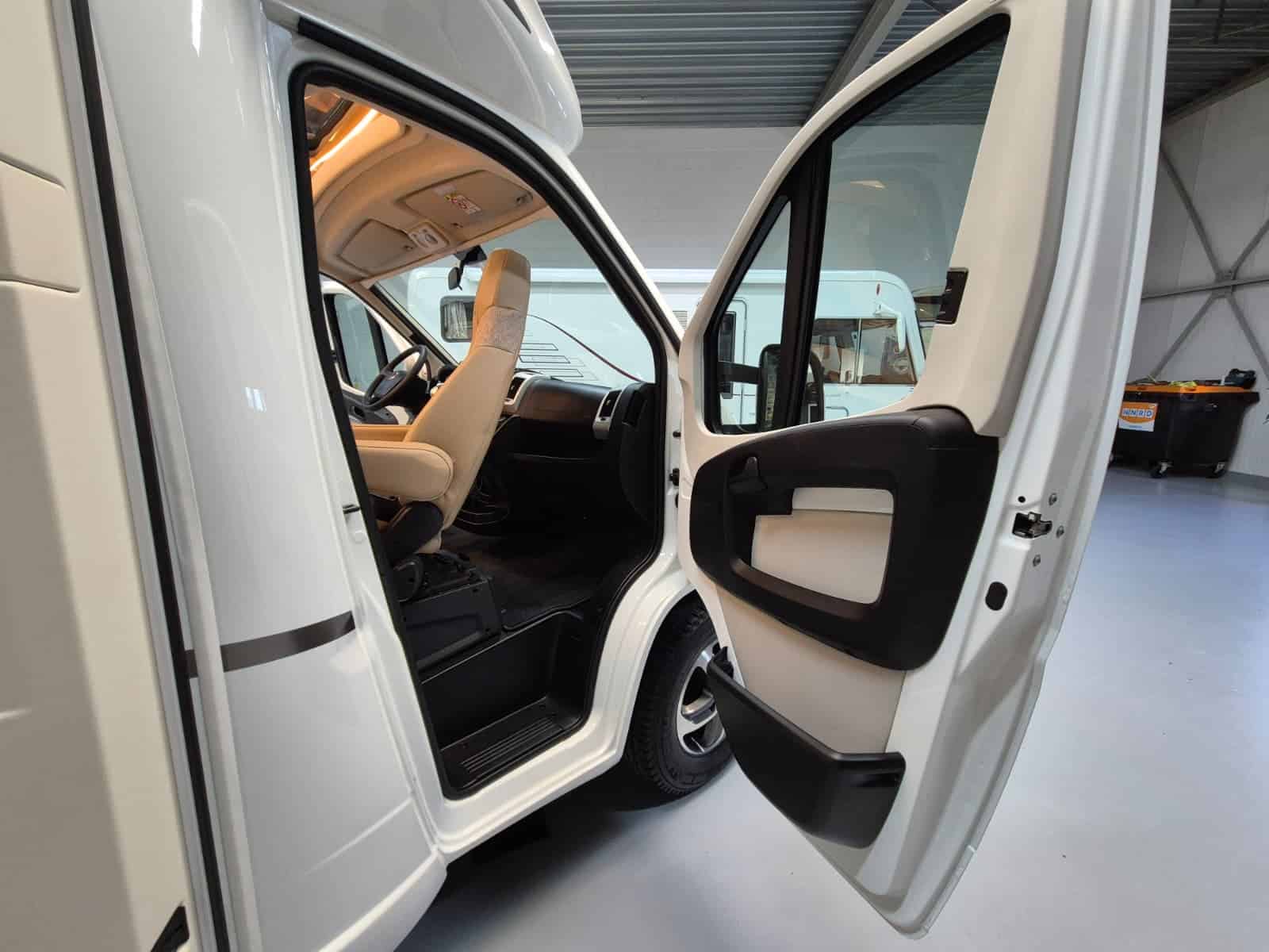 Comfort & Voorzieningen Ringverwarming (wintervast, geschikt voor alle seizoenen) Hydraulisch levelsysteem (Amplo) met afstandsbediening Zonnepaneel 2 huishoudaccu’s Panoramadak Verduistering en horren rondom + cabine Indirecte verlichting, leeslampjes en sfeerverlichting Buitenlamp Luifel Hordeur Zeer grote XXL-garage achterin