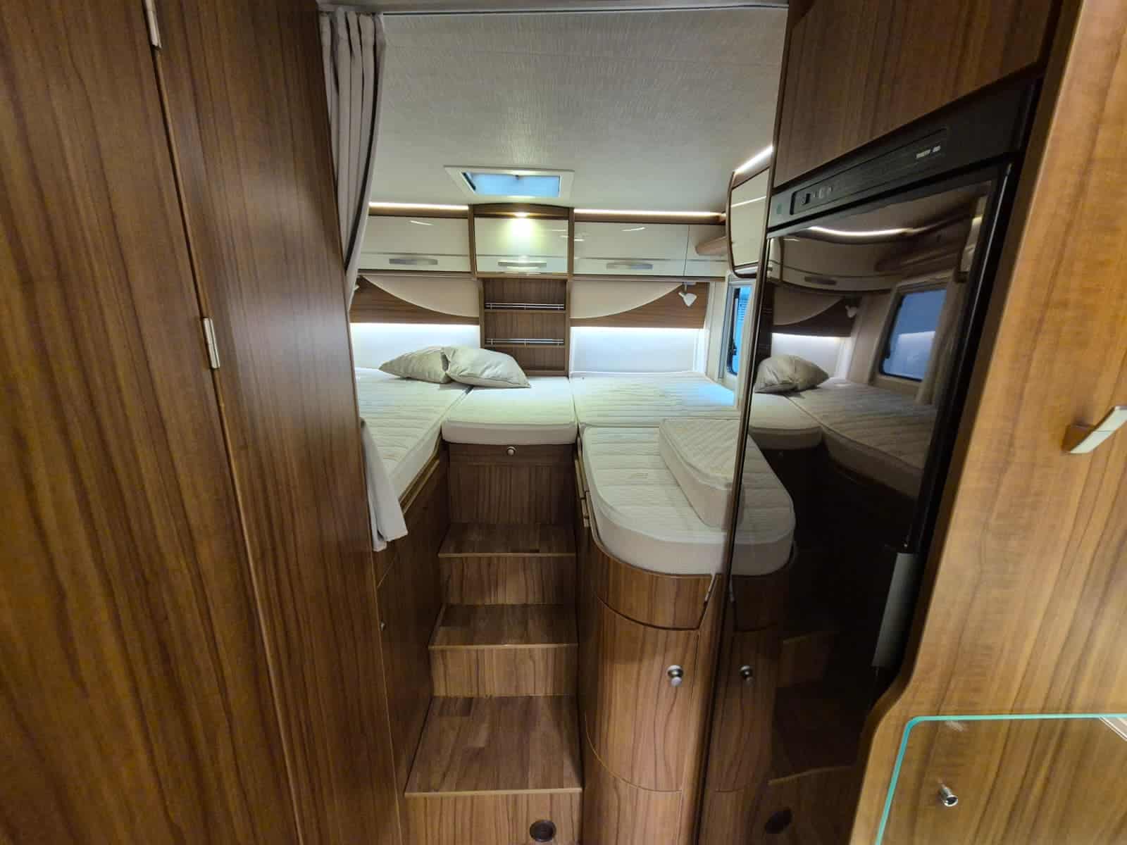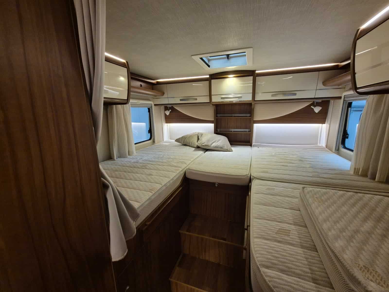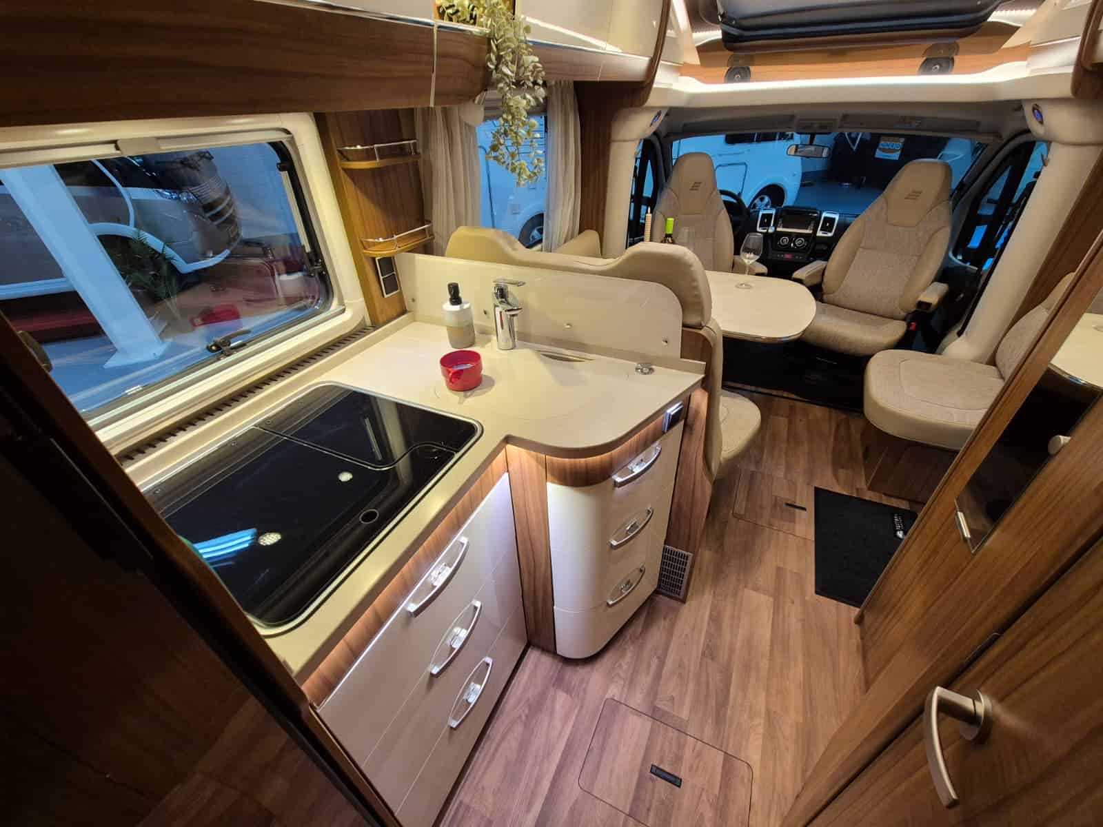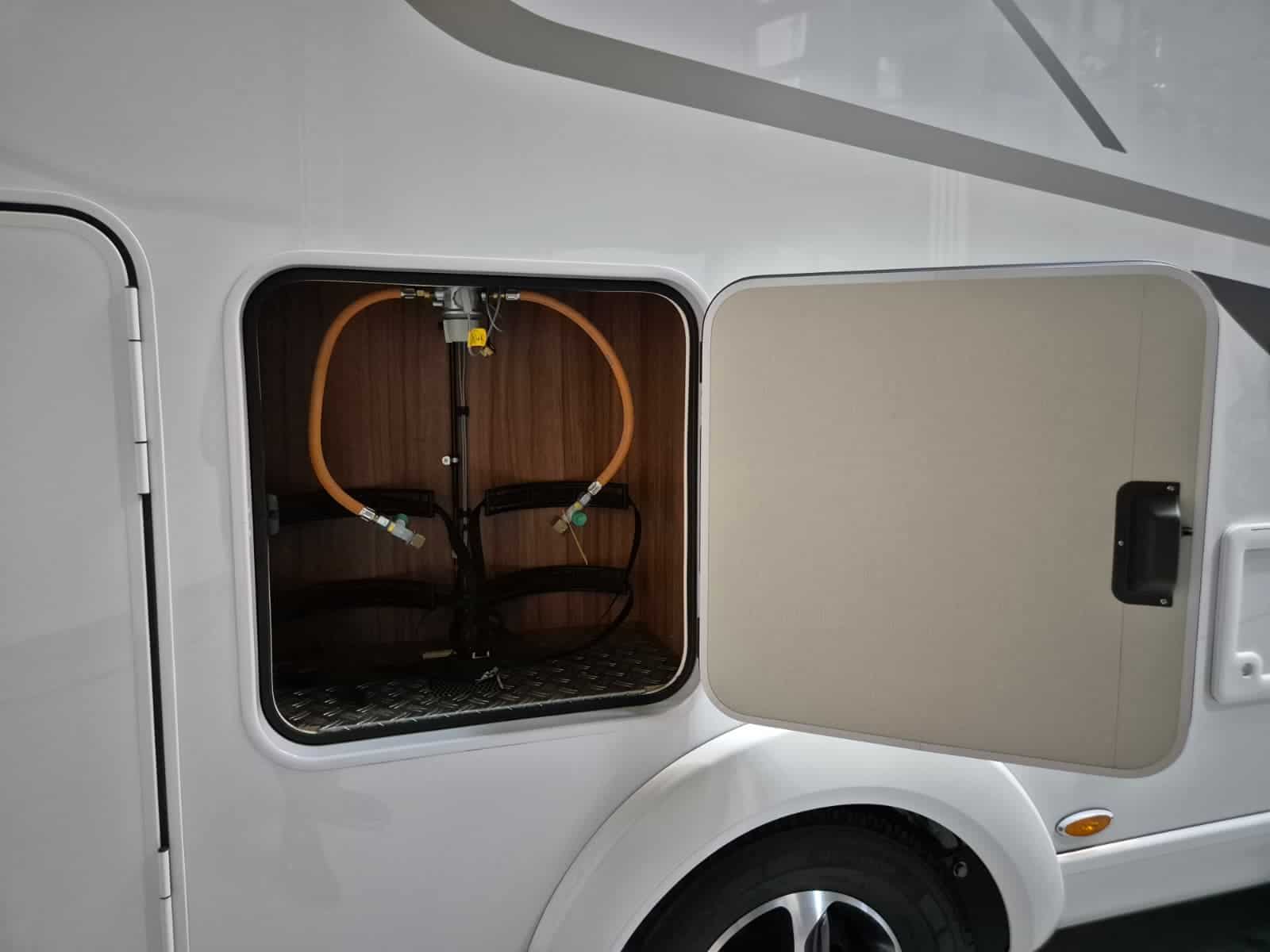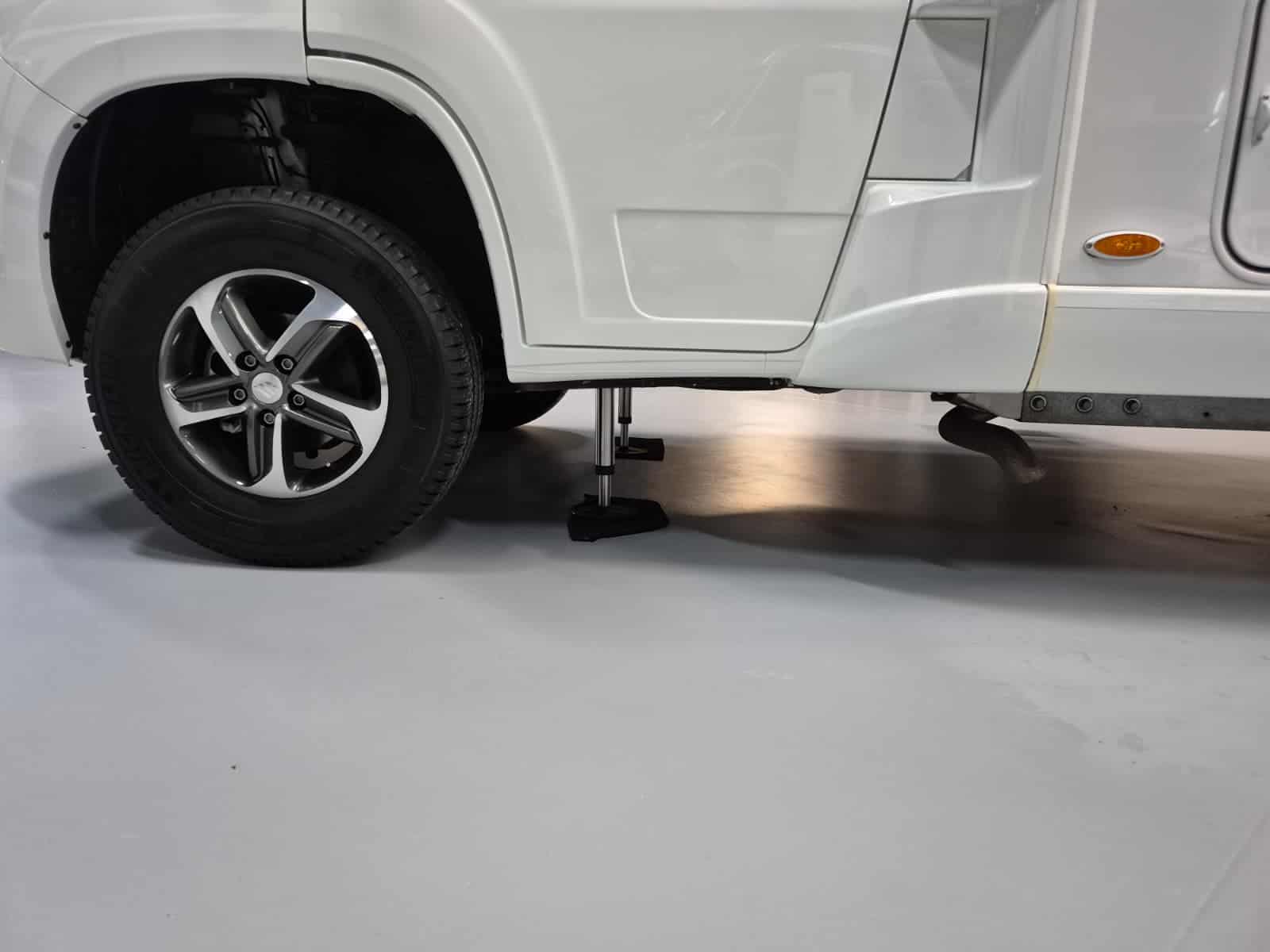 Comfort & Voorzieningen Ringverwarming (wintervast, geschikt voor alle seizoenen) Hydraulisch levelsysteem (Amplo) met afstandsbediening Zonnepaneel 2 huishoudaccu’s Panoramadak Verduistering en horren rondom + cabine Indirecte verlichting, leeslampjes en sfeerverlichting Buitenlamp Luifel Hordeur Zeer grote XXL-garage achterin