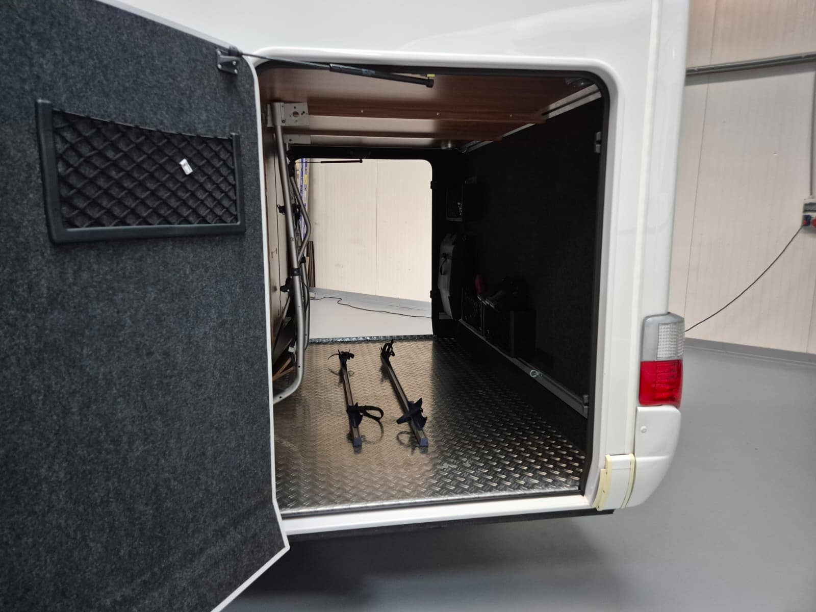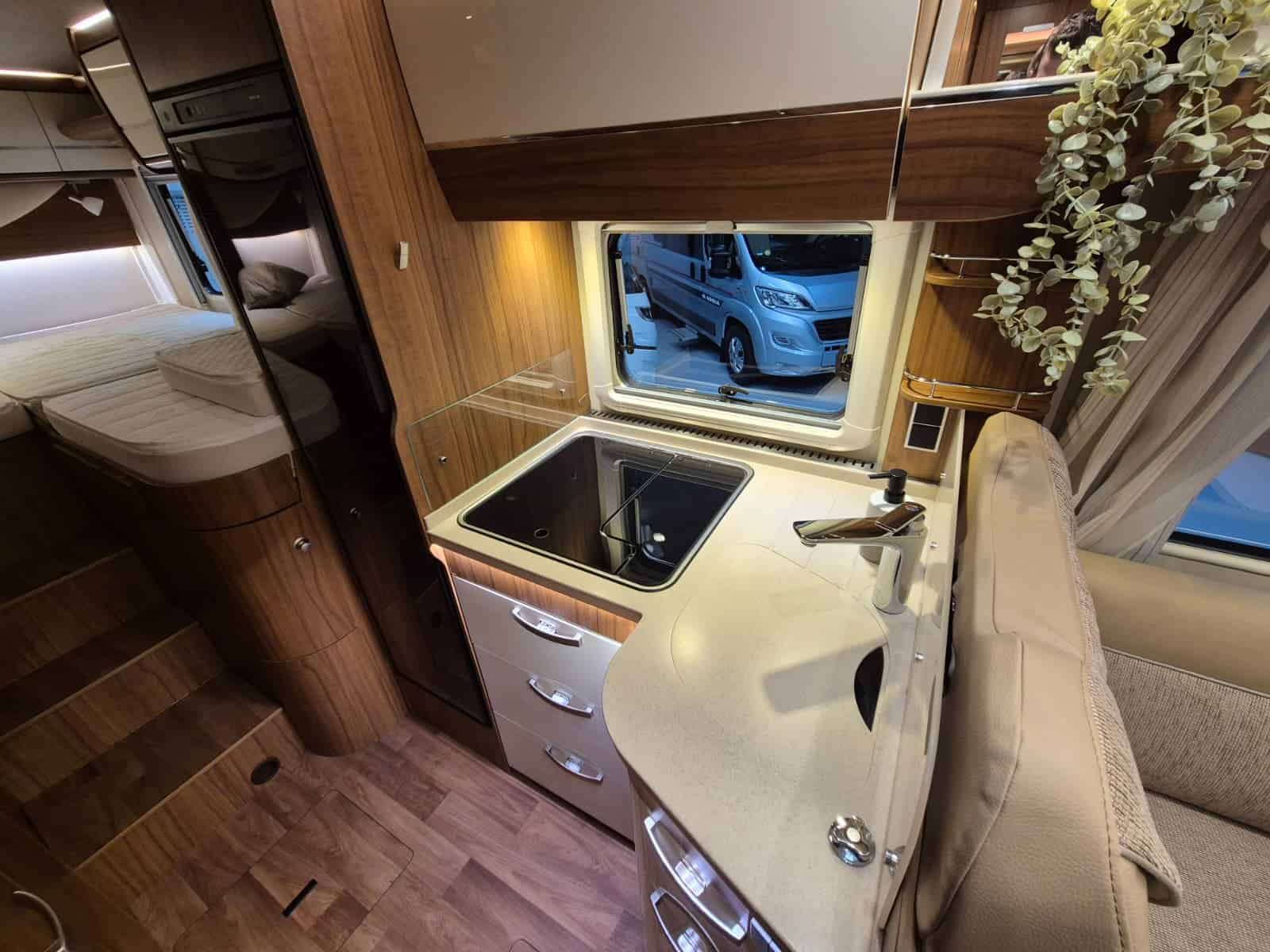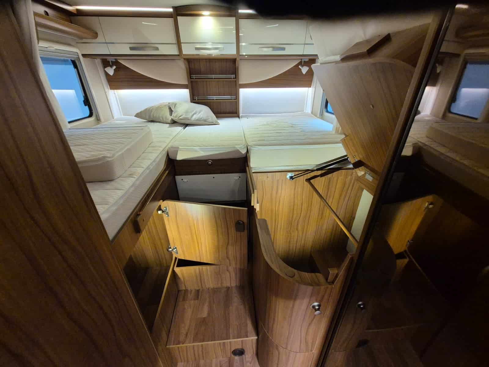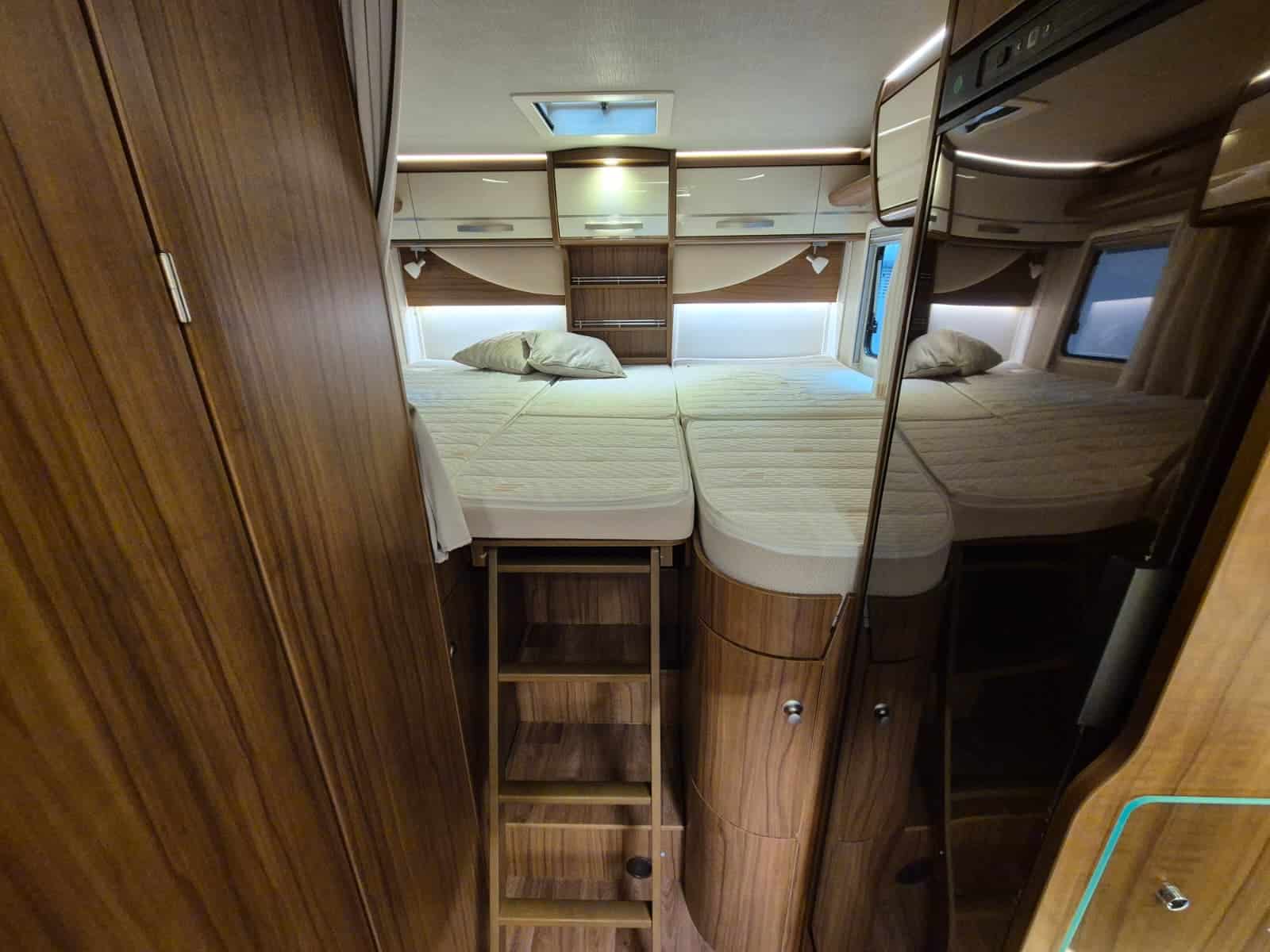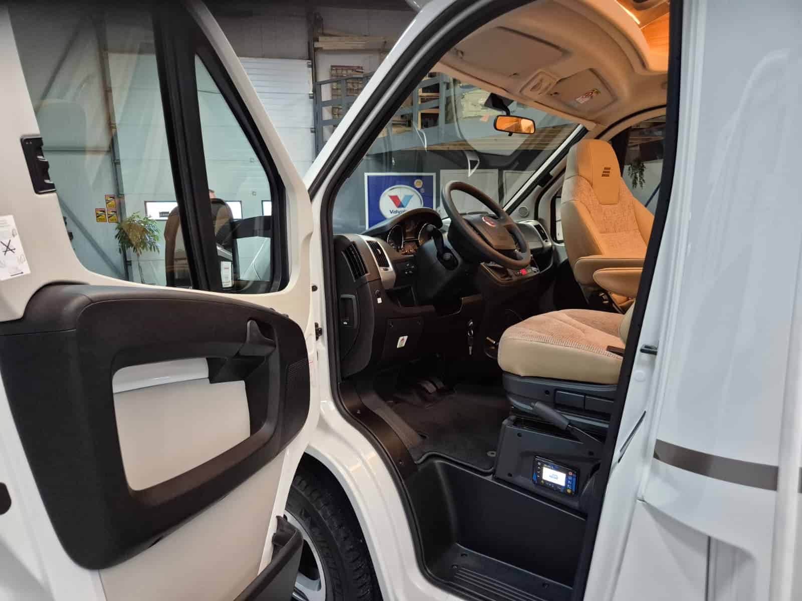 Comfort & Voorzieningen Ringverwarming (wintervast, geschikt voor alle seizoenen) Hydraulisch levelsysteem (Amplo) met afstandsbediening Zonnepaneel 2 huishoudaccu’s Panoramadak Verduistering en horren rondom + cabine Indirecte verlichting, leeslampjes en sfeerverlichting Buitenlamp Luifel Hordeur Zeer grote XXL-garage achterin