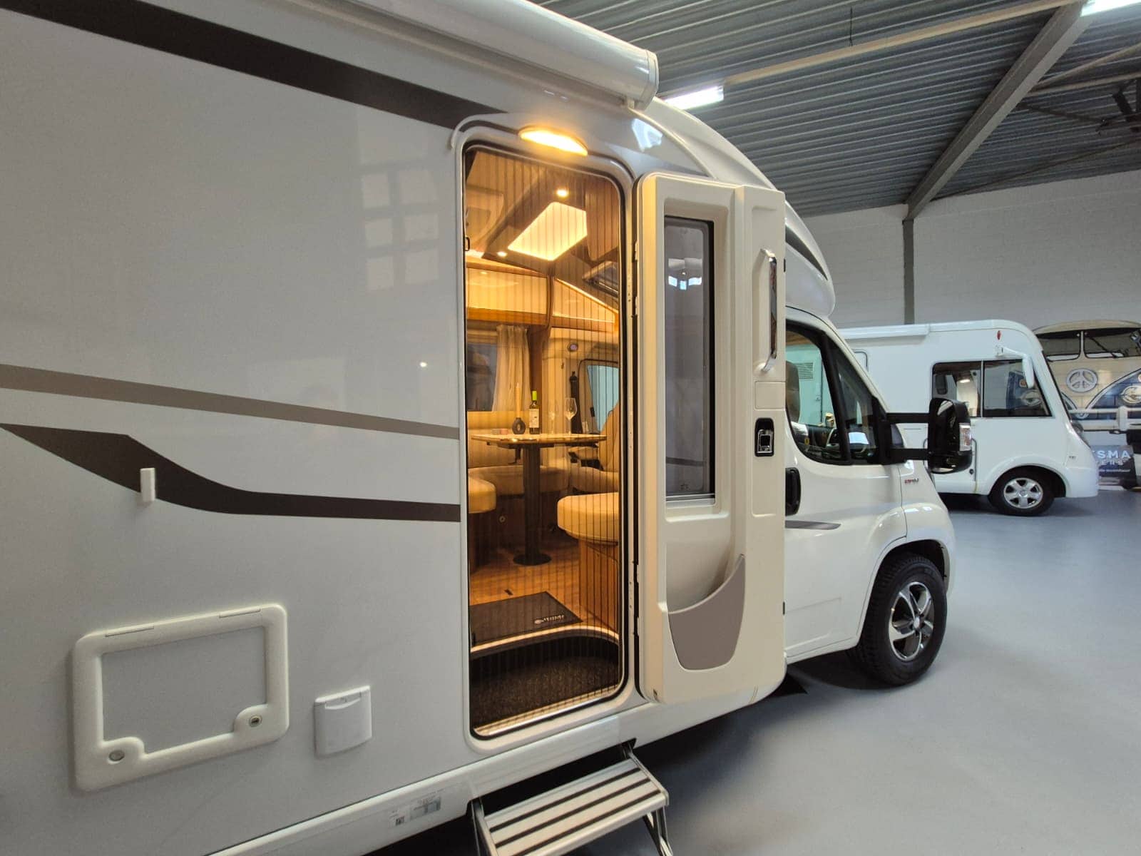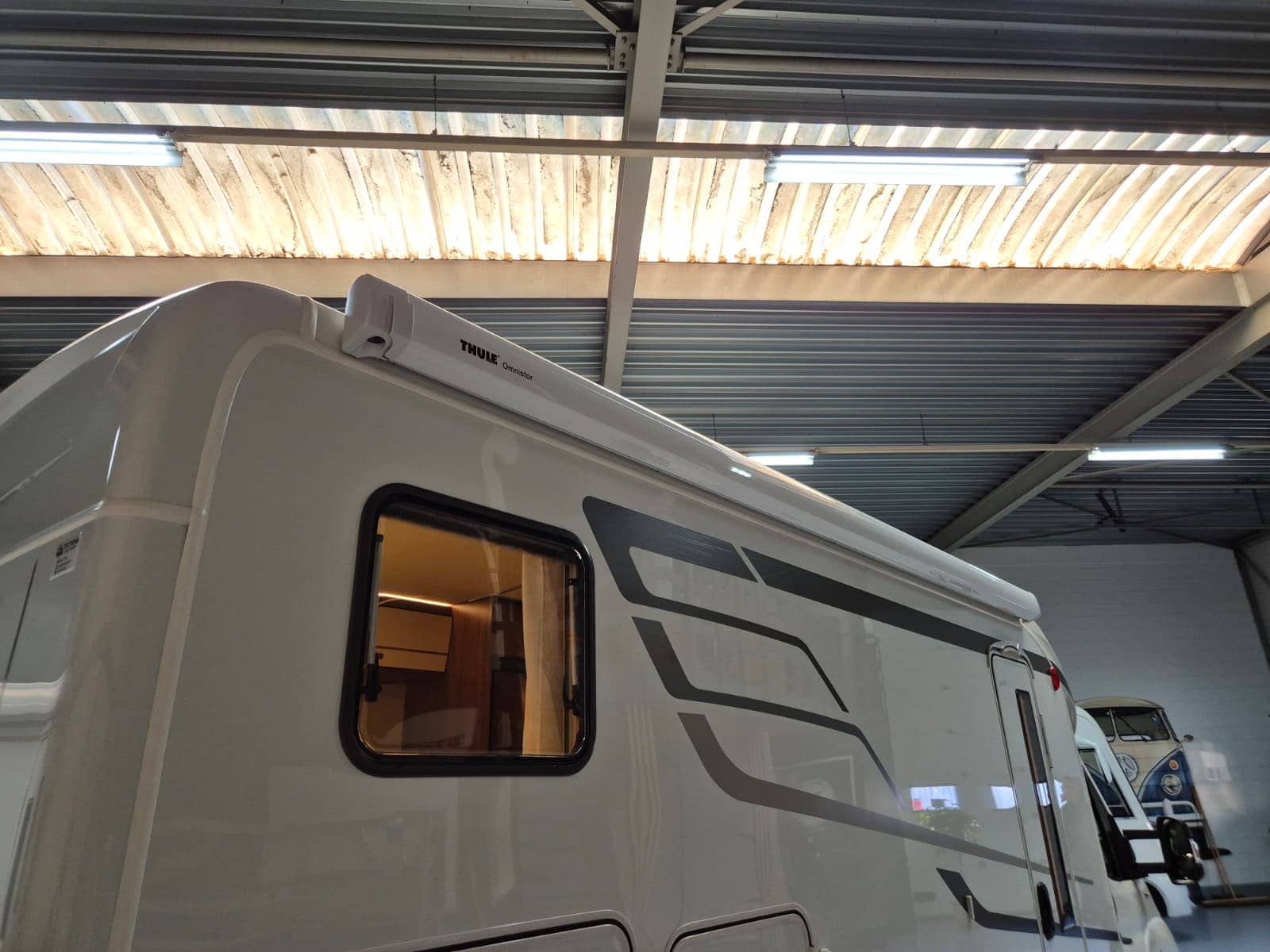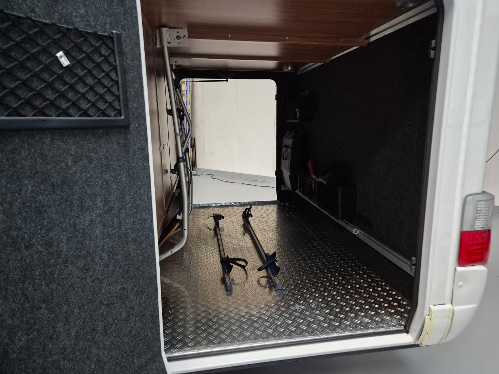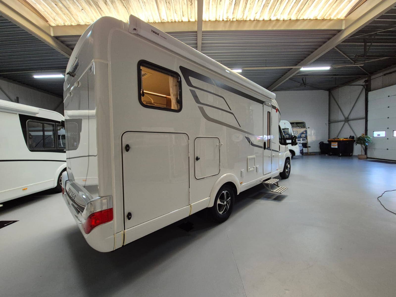 Comfort & Voorzieningen Ringverwarming (wintervast, geschikt voor alle seizoenen) Hydraulisch levelsysteem (Amplo) met afstandsbediening Zonnepaneel 2 huishoudaccu’s Panoramadak Verduistering en horren rondom + cabine Indirecte verlichting, leeslampjes en sfeerverlichting Buitenlamp Luifel Hordeur Zeer grote XXL-garage achterin