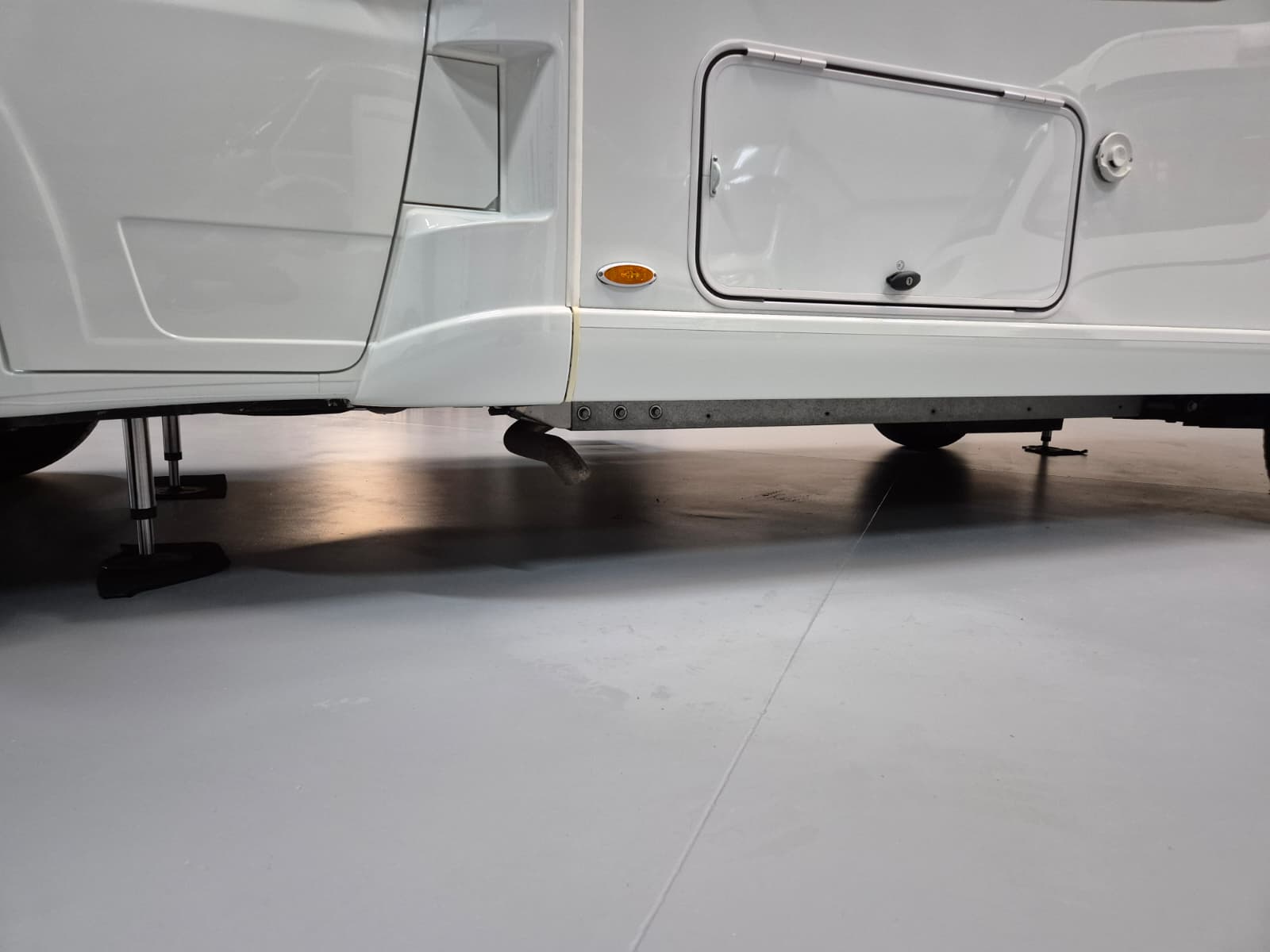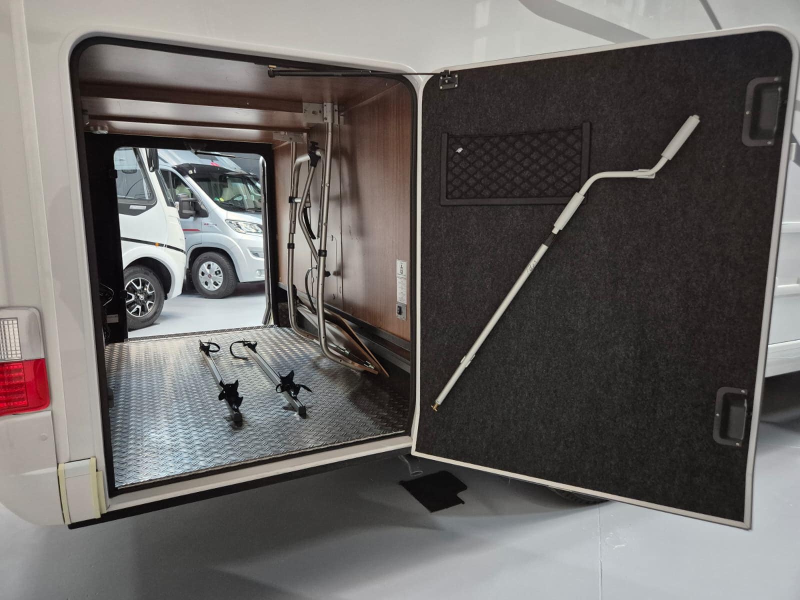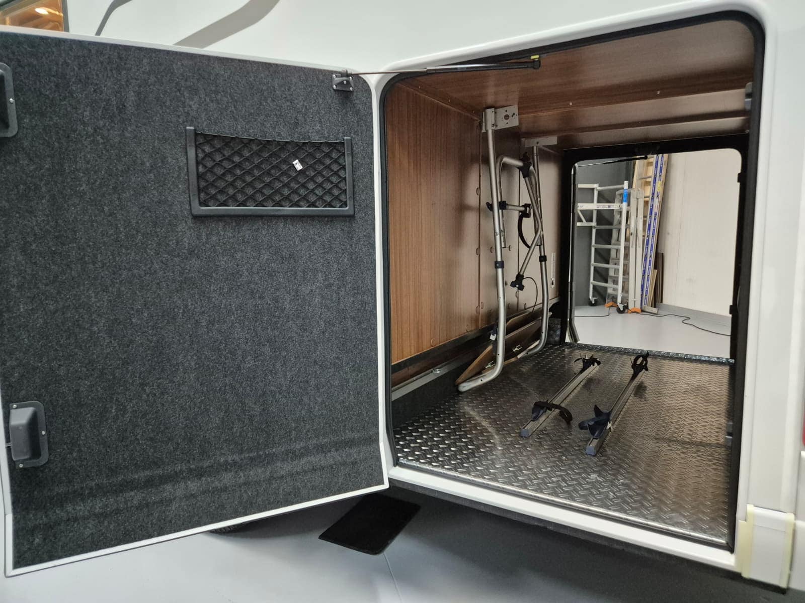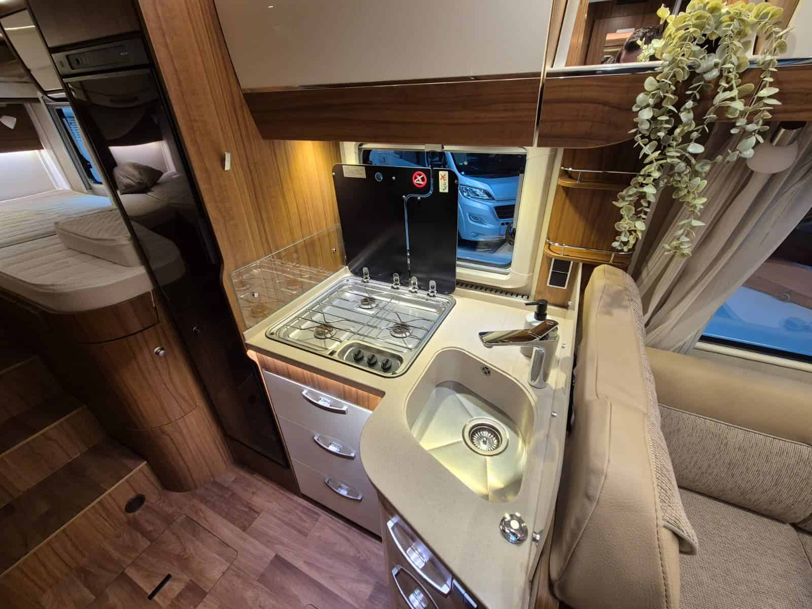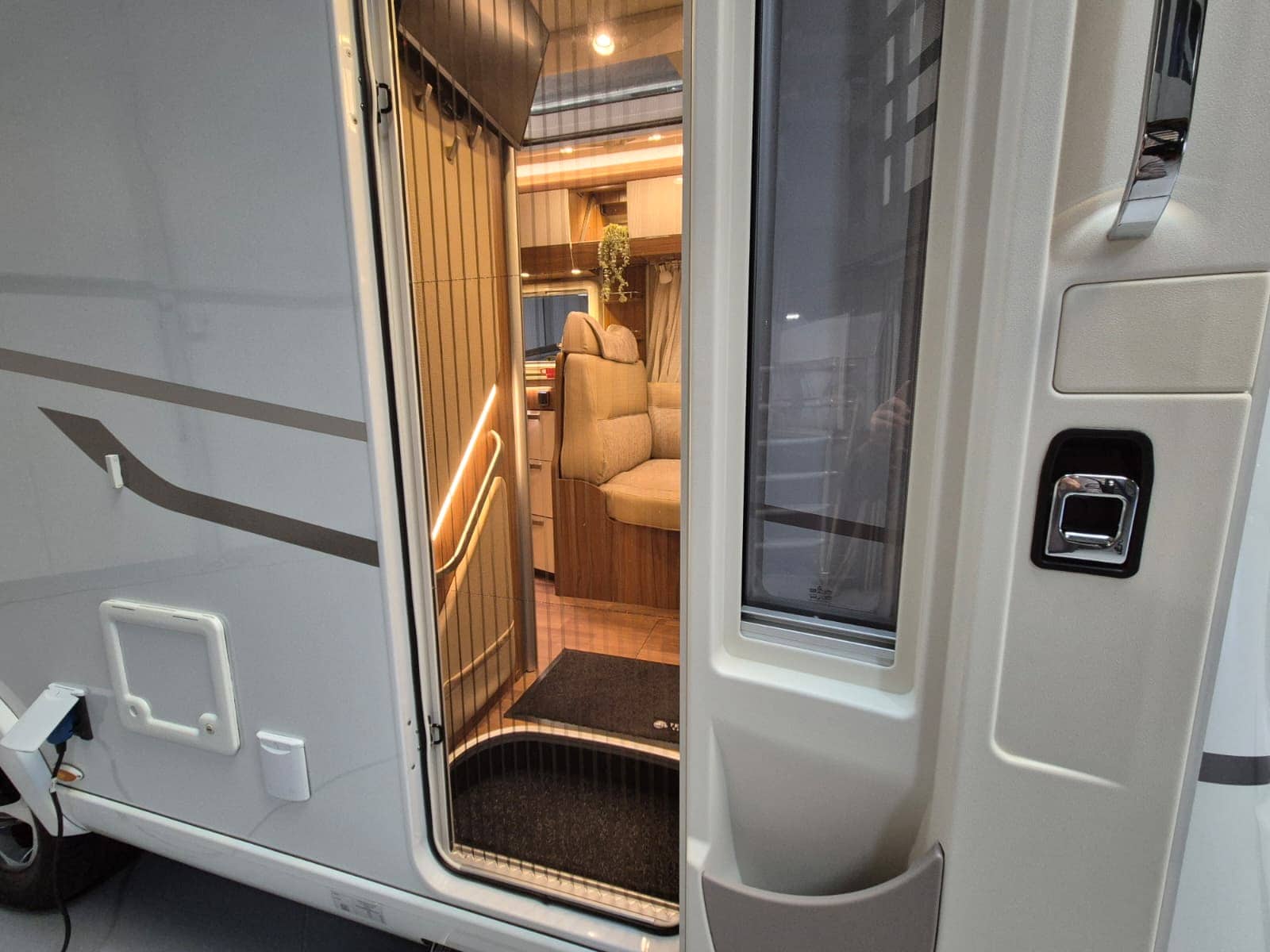 Comfort & Voorzieningen Ringverwarming (wintervast, geschikt voor alle seizoenen) Hydraulisch levelsysteem (Amplo) met afstandsbediening Zonnepaneel 2 huishoudaccu’s Panoramadak Verduistering en horren rondom + cabine Indirecte verlichting, leeslampjes en sfeerverlichting Buitenlamp Luifel Hordeur Zeer grote XXL-garage achterin